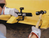 3. Placez l’outil sur la pointe (A), localisez l’axe dans le trou du support (B) et frappez l’extracteur (C). |