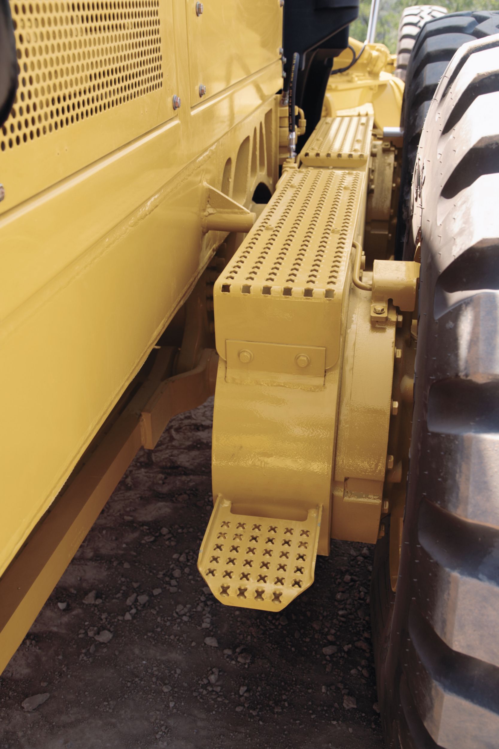 Perforated steel tandem walkways and conveniently located grab rails offer a sturdy platform and support for moving on, off and around the machine. Lighting can be activated from ground level and turned off via in-cab switch.