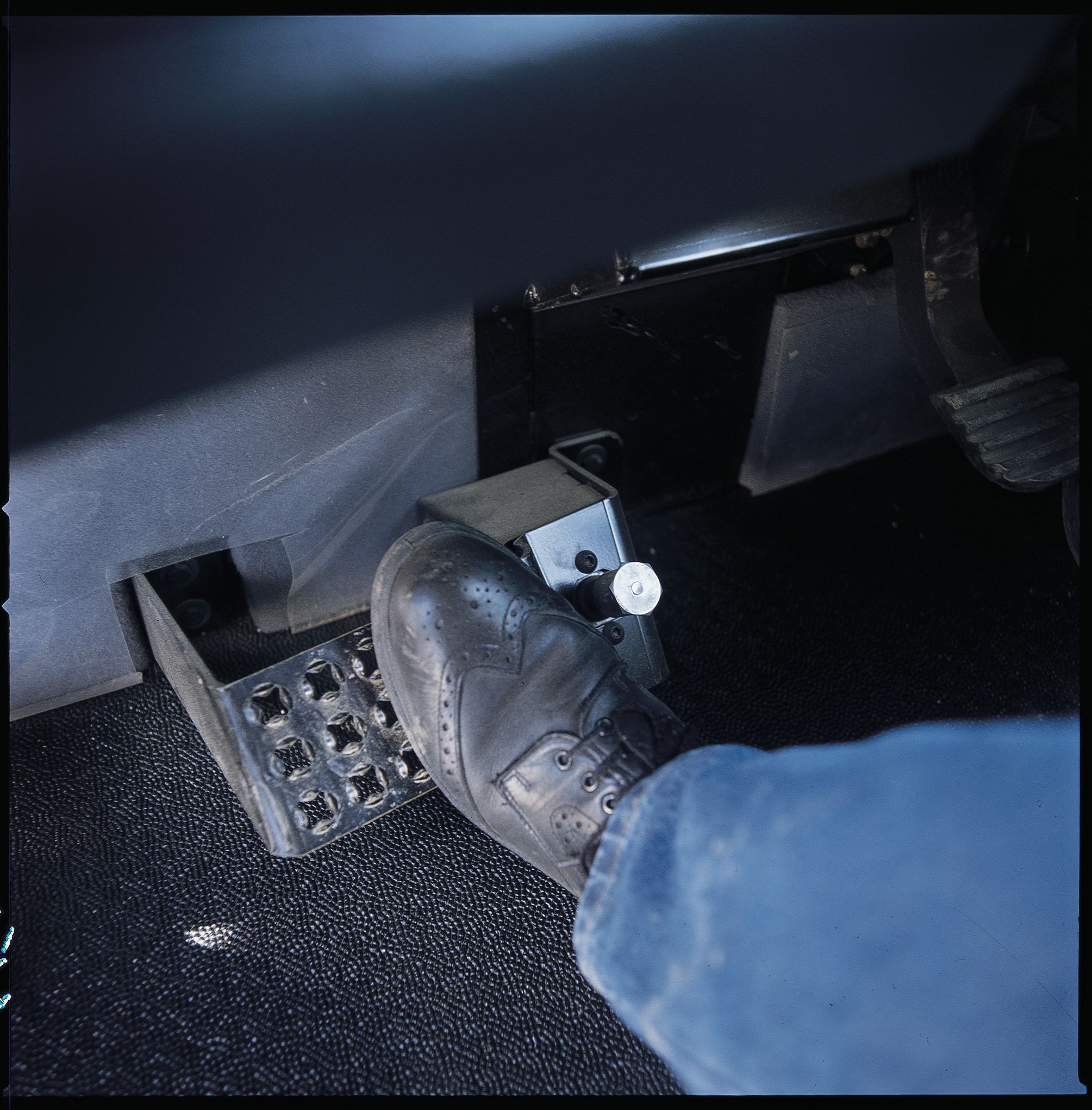 Locks all three axles in unison and modifies torque distribution for excellent traction in poor underfoot conditions and on grades. It is operated by a switch located at the footrest.