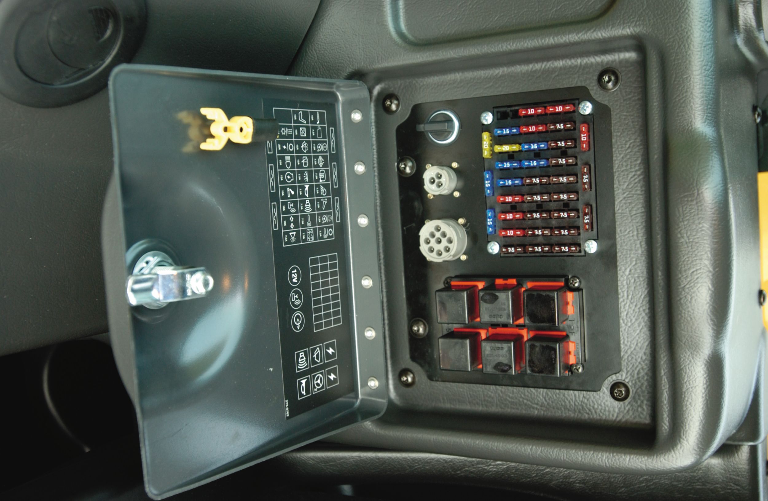 Located inside the cab, this service center provides a power port, diagnostic connector and Cat Data Link connector.