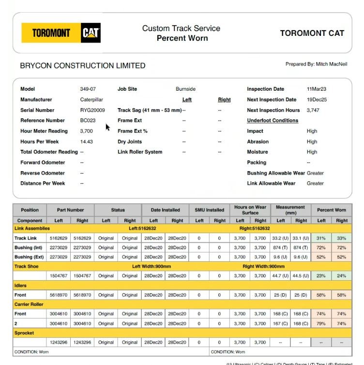 A CTS inspection includes trained technicians and a complete line of undercarriage management tools, regular undercarriage inspections for maximum component life, and full maintenance and repair alternative reports to help you make informed service decisions. CTS gives you the vital information you need to gain more control over your total equipment investment.